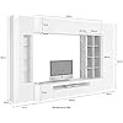 STRUTTURA E UTILIZZO: Mobile per salotto composto da una base porta TV, pensili a muro e vetrinetta con ante a ribalta e battenti interamente di colore bianco lucido con dettaglio della libreria con scaffali di colore cemento -L'abbinamento di mobili pensili chiusi da ante anche con dettagli in vetro e la scaffalatura permettono di lasciare custoditi o in esposizione i vostri soprammobile - Sistema di illuminazione LED di colore blu integrato che donna un tocco di classe al prodotto - Oltre alla TV potrete personalizzare la parete con i vostri soprammobili preferiti che rimarranno in esposizione sugli scaffali