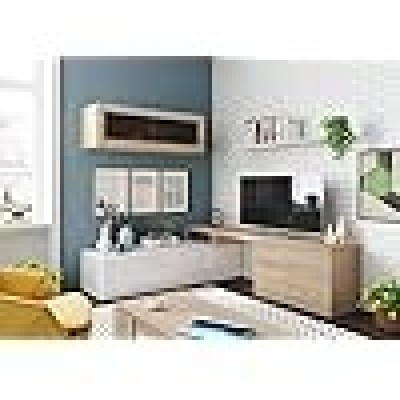 • STRUTTURA E UTILIZZO - Mobile TV per salotto con possibilità di montaggio angolare, composto da una base porta televisione con due ante, di cui una a ribalta, un pensile a muro con anta singola a vasistas a vetro, una mensola abbinata - La scelta dei mobili che compongono questo set da salotto rendono il design di questo articolo d'arredamento moderno, funzionale e salvaspazio - Lo spazio all'interno delle ante è perfetto per riporre in modo ordinato i vostri libri, documenti, oggetti decorativi o stoviglie - Set soggiorno perfetto per arredare un salotto, sala da pranzo oppure una stanza open space