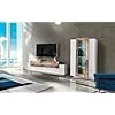 • STRUTTURA E UTILIZZO - Mobile per salotto composto da una base porta TV di colore bianco lucido con tre ante con apertura a ribalta e una mobile vetrina a muro: la vetrina pensile è dotata di tre ante battenti di cui quella centrale con dettaglio in vetro - Entrambi i moduli presentano un'anta con dettaglio di colore grigio acero - La vetrina contiene al suo interno sette ripiani di cui tre in vetro temperato con illuminazione - Sistema di illuminazione LED di colore bianco integrato - A seconda delle vostre necessità potrete posizionare il modulo pensile nella posizione che preferite - Lo spazio all'interno delle ante è perfetto per riporre in modo ordinato oggetti o stoviglie in