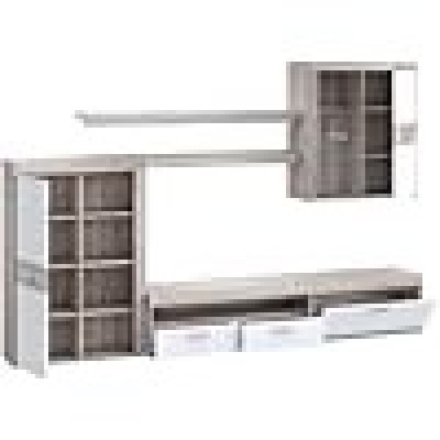 • La pared equipada tiene espacios grandes para almacenar dispositivos multimedia y accesorios de suministro