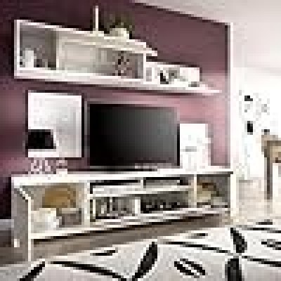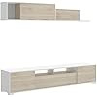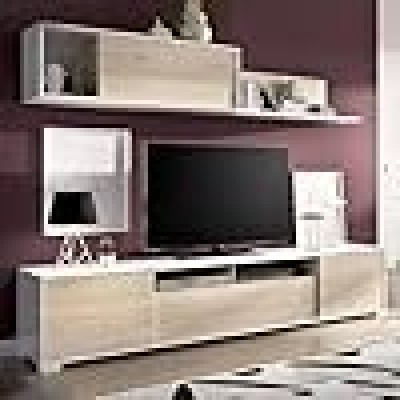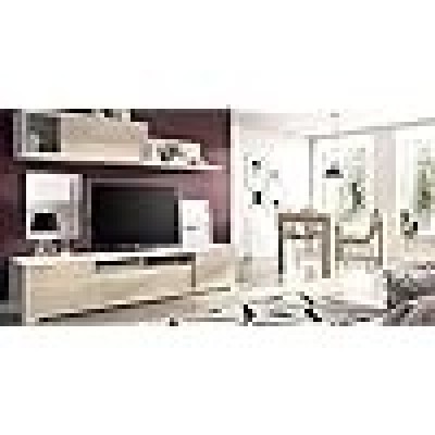 • STRUTTURA E UTILIZZO - Mobile TV per salotto composto da una base porta televisione con un'anta a ribalta, due ante battenti, tre vani interni e due ripiani, un mobile pensile con un vano e un'anta a ribalta e una mensola - La scelta dei vari mobili che compongono questa composizione da salotto rendono il design di questo articolo d'arredamento moderno, funzionale e salvaspazio - Set soggiorno color rovere e bianco lucido, perfetto per arredare un salotto, sala da pranzo oppure una stanza open space