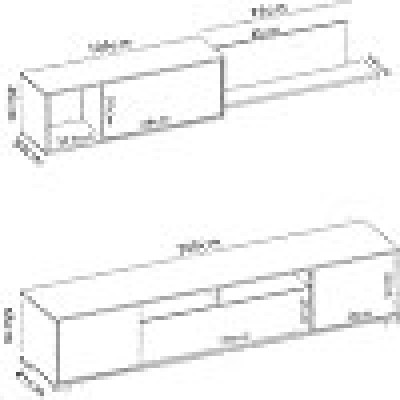 • Dimensiones en CM - TV Gabinet: Longitud: 200, Ancho: 41, Altura: 42 - Unidad de pared: Longitud: 105, Ancho: 30, Altura: 35 - Estante: Longitud: 95, Ancho: 19, Altura: 28: 28