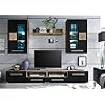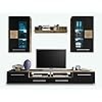 • Detenida: los muebles están formados por 1 x gabinete de TV con 2 puertas, 2 habitaciones abiertas y 2 cajones 1 x estante de pared 2 x votas con 1 puerta y 2 estantes de vidrio.
