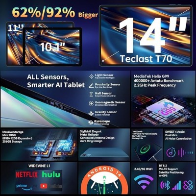 Teclast T70 tableta Tabletas de 14 pulgadas MTK G99 Octa-núcleos 2.2GHz, 20GB RAM+256GB ROM (TF 8TB)