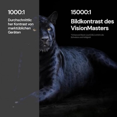 • Padronanza del Colore con Contrasto 15.000:1 - Sperimenta un rapporto di contrasto ultra-elevato 15.000:1 e la tecnologia Enhanced Black Level (EBL), che offre veri neri profondi nelle scene più buie. Con un'ampia gamma cromatica Rec.2020 del 110% e una luminosità di 3000 Lumen ISO, VisionMaster Pro offre colori vividi e realistici, privi di effetti arcobaleno. La calibrazione certificata ISF garantisce un'accuratezza e una coerenza cromatica leader del settore per una perfezione cinematografica su misura per le tue preferenze.