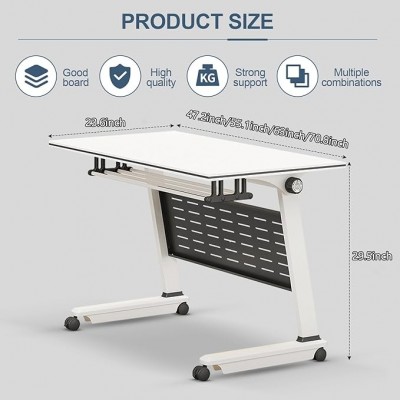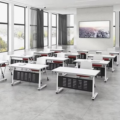 Tabla de conferencia Combinada libremente: nuestra tabla de conferencias plegable se puede mover y combinarse libremente, rompiendo el espacio de oficinas tradicional. Fácil de usar, puede juntar rápidamente una variedad de combinaciones para controlar fácilmente varios escenarios para satisfacer sus necesidades. Se puede utilizar como mesa de conferencias, mesa de capacitación, mesa de reuniones, mesa de recepción, mesa de enseñanza, mesa de oficina
