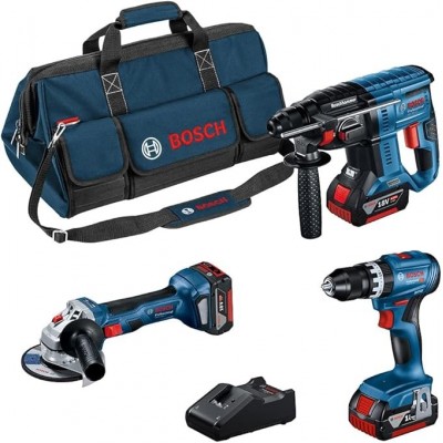 • Incluido en Amazon Exclusive: GSB 18V-45 + GBH 18V-21 + GWS 18V-7 (125), 1 GBA 18V 4.0AH Batería, 1 Batt. GBA 18V 4.0AH, 1 Batt. GBA 18V 4.0AH, cargador. Quick Gal 18V-40, bolsa de herramientas